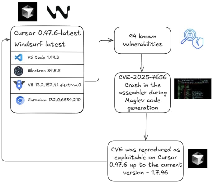 Araştırmacılar, Cursor ve Windsurf gibi yapay zeka destekli kodlama yazılımlarında kapatılmamış 94'ten fazla güvenlik açığı buldu. Durumun komik bir yanı var: Bu güvenlik açıkları, eski Chromium sürümlerine ait ve çoktan yamalanmış, herkes tarafından bilinen açıklar.