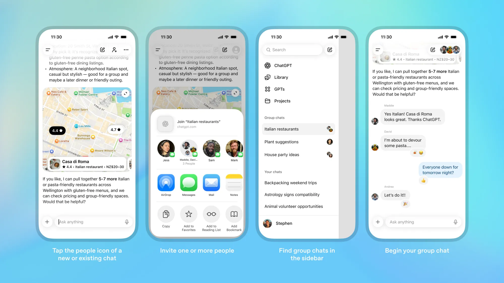 OpenAI ChatGPT deneyimini bireysel olmaktan çıkarıp sosyal bir boyuta taşıyor. Platforma eklenen yeni grup sohbeti özelliği sayesinde artık arkadaşlarınızı sohbetlerinize davet edebilir ve yapay zeka ile birlikte etkileşime geçebilirsiniz.
