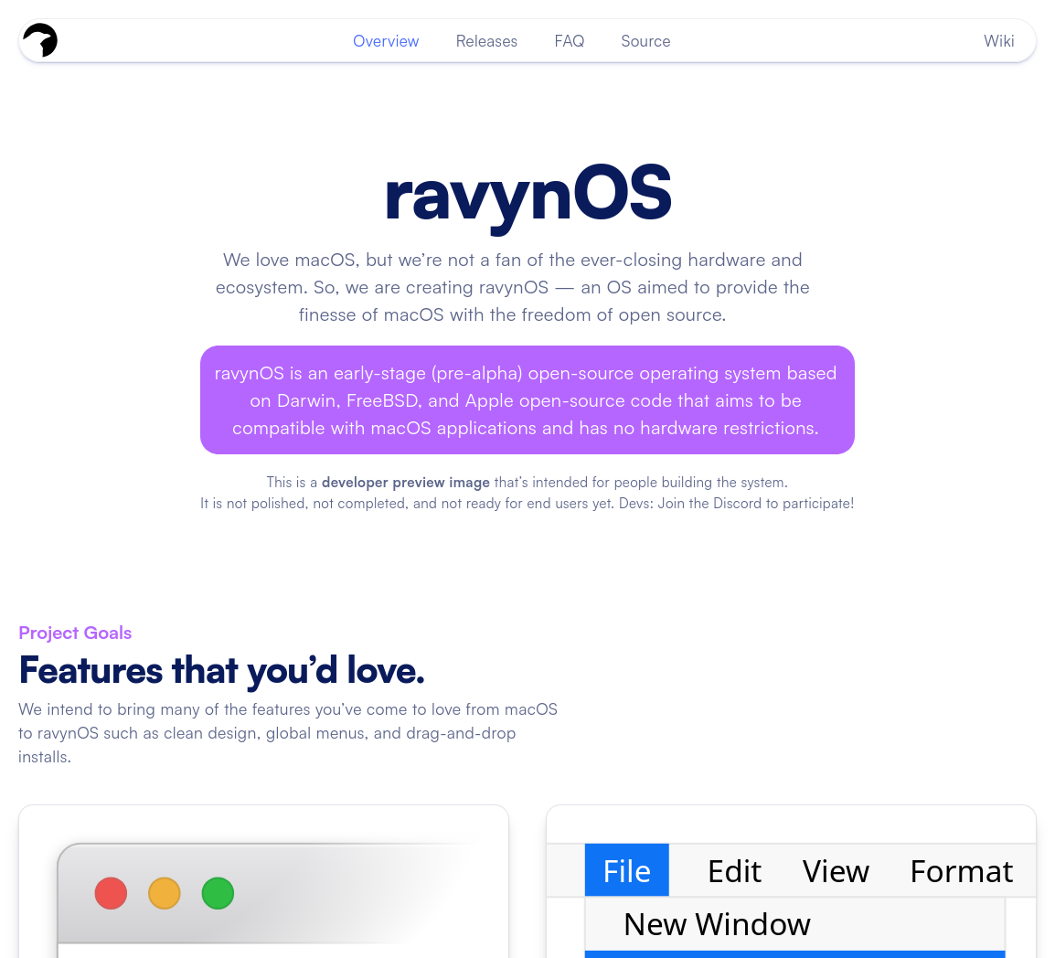 FreeBSD tabanını kullanan ancak görünüm, hissiyat ve uygulama yapısı olarak macOS'i birebir kopyalayan ravynOS adında yeni bir işletim sistemi duyuruldu.