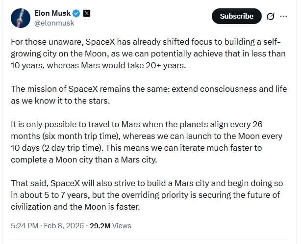 🌑 Elon Musk SpaceX'in Önceliğini Ay'a Şehir Kurmaya Çevirdi